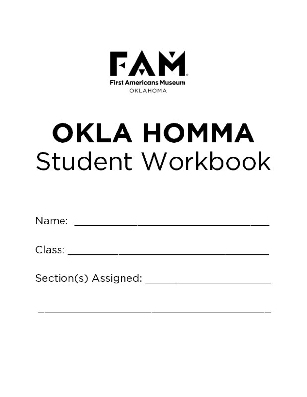 Developed for student use in the OKLA HOMMA exhibition at First Americans Museum. Teachers are encouraged to assign students portions of the workbook to complete during a self-guided tour of the museum. Please note all school field trips must be scheduled prior to arrival at FAMok.org/schools.