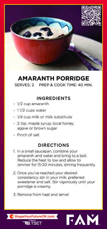 - Recipes developed by Chef Loretta Barrett Oden (Citizen Potawatomi Nation) for First Americans Museum and Shape Your Future, a program of TSET.